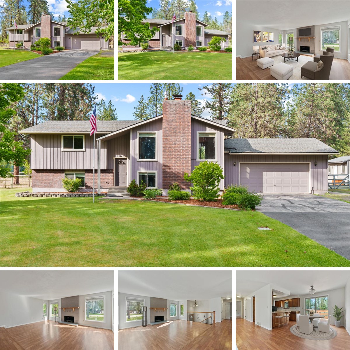 Welcome to Nine Mile Falls, where country meets community! This beautifully maintained 3+ bedroom, 2 full bath home sits on 1.13 acres, and is just two blocks from Lake Spokane. There are two spacious living areas, including a flexible office or 4th bedroom, and the lower-level rec room features extensive built-in storage with shelving and cabinets.